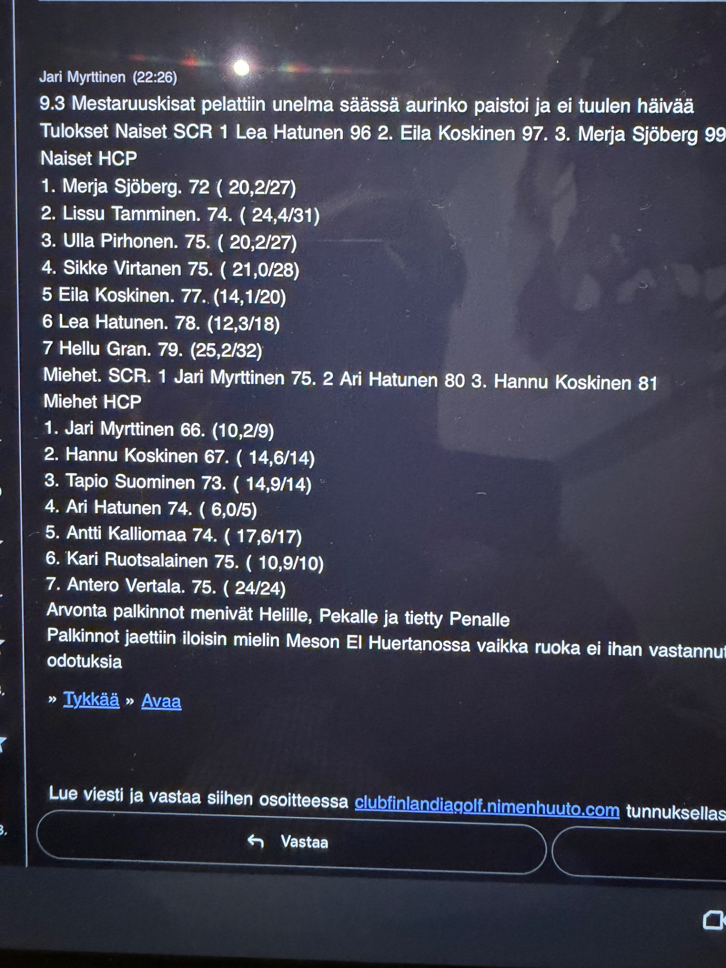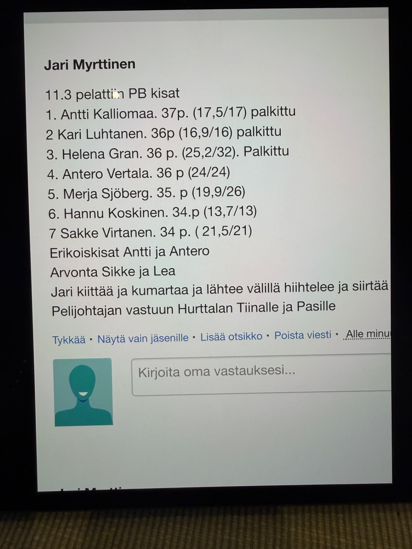 Kiitos kaikille osallistujille mukavasta pelipäivästä.